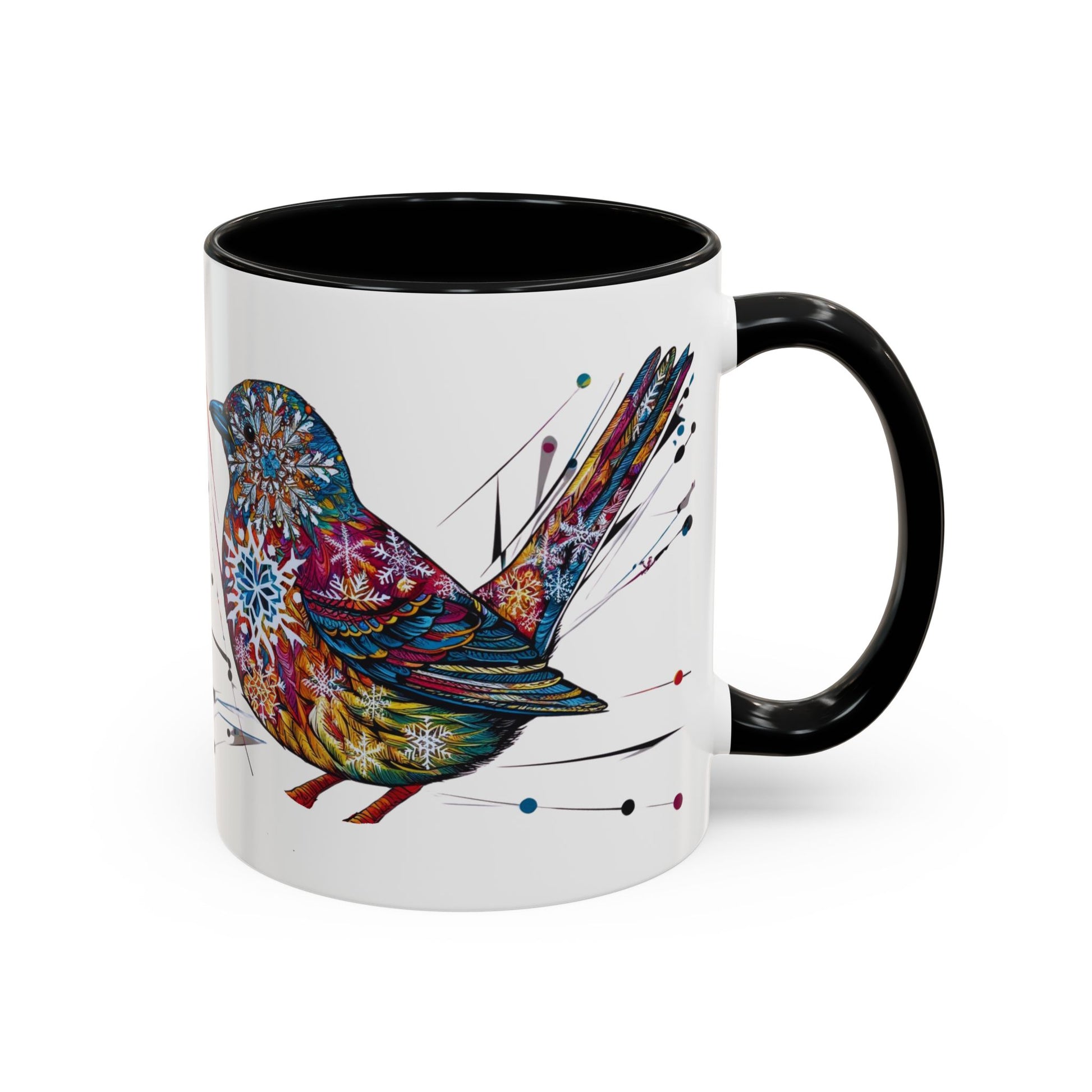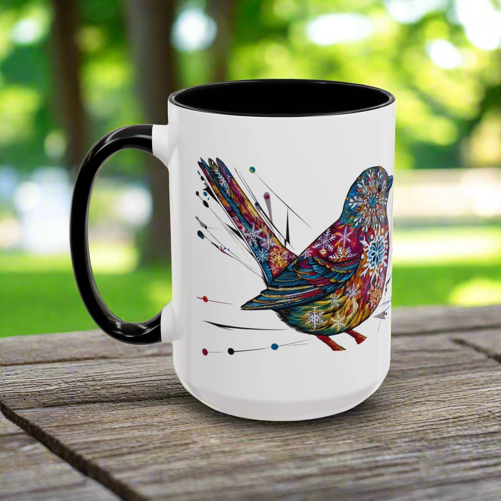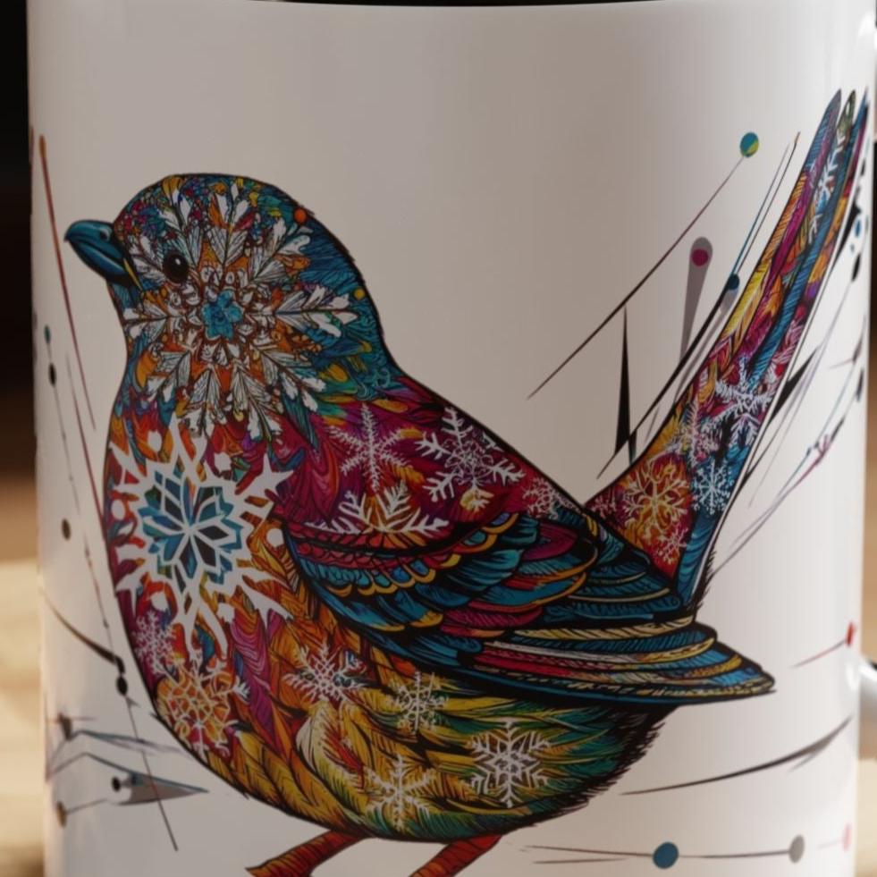 Bird Snowflake Winter Modern Unique Design Coffee Mug, Bird Nerd Mug (11, 15oz), Holiday Christmas Mug for Bird Lover, Gift for Teacher