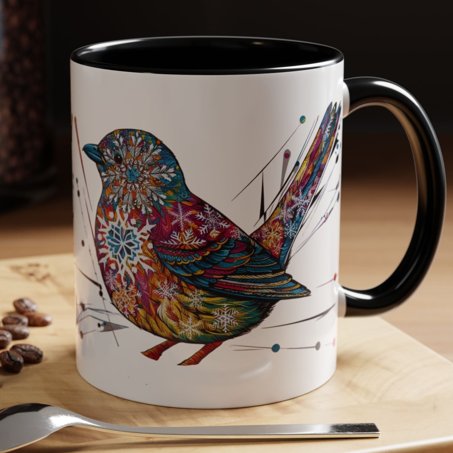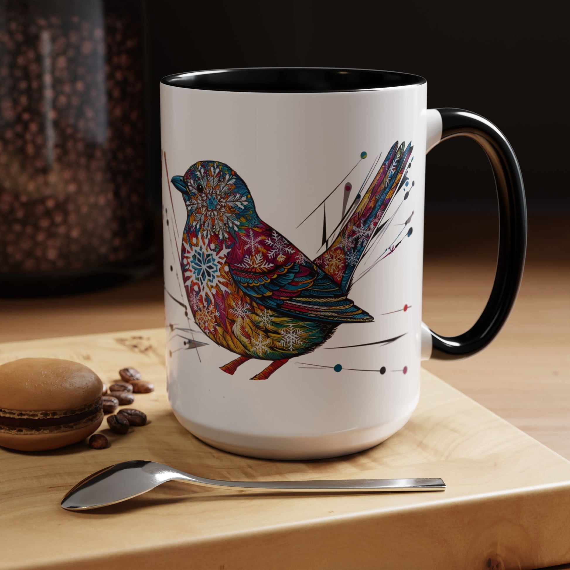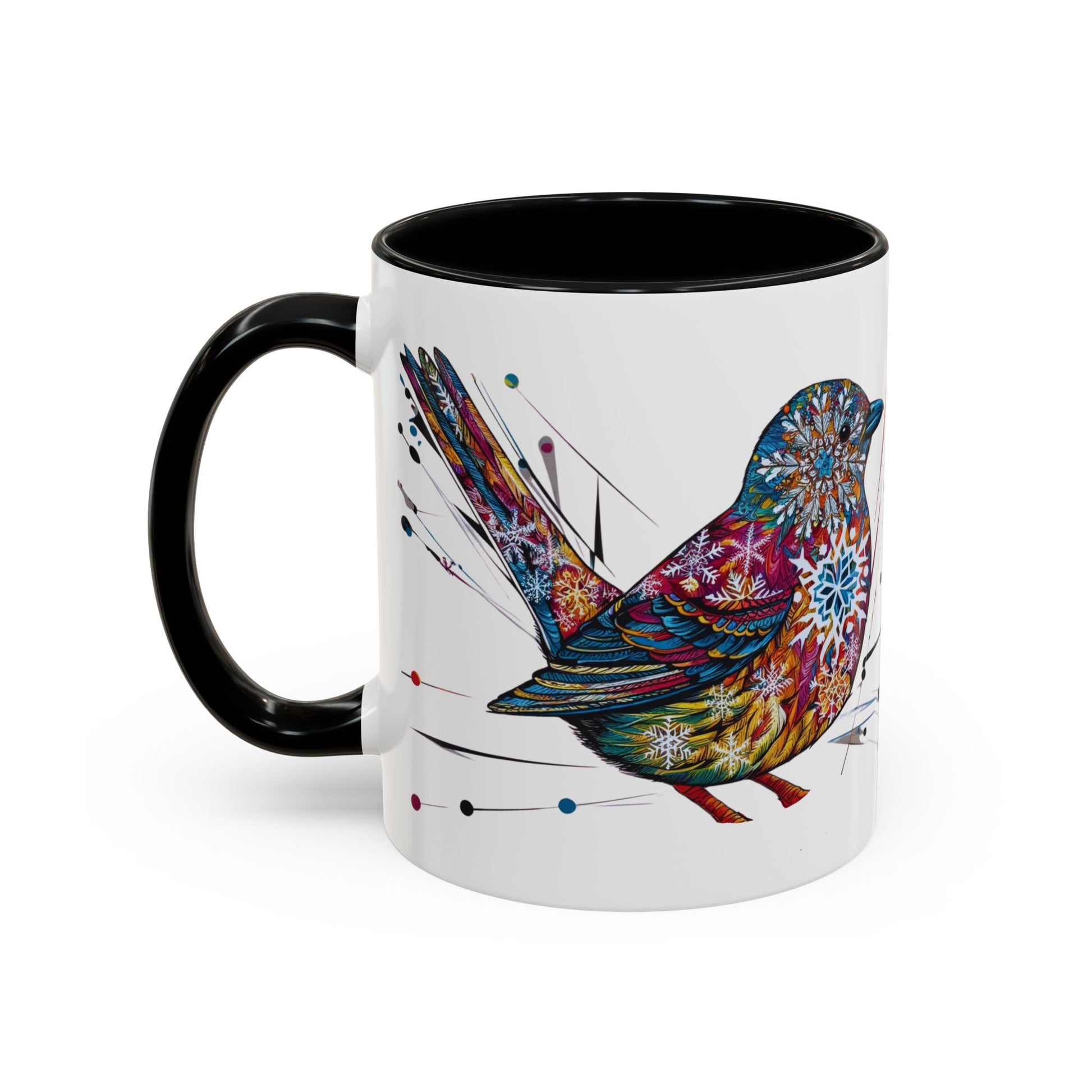 Bird Snowflake Winter Modern Unique Design Coffee Mug, Bird Nerd Mug (11, 15oz), Holiday Christmas Mug for Bird Lover, Gift for Teacher